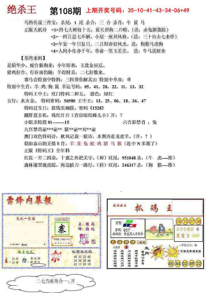 | 五行肖 | 五行生肖属性:【金肖】猴鸡 【木肖】虎兔 【水肖】鼠猪 【火肖】蛇马 【土肖】牛羊龙狗 | |||