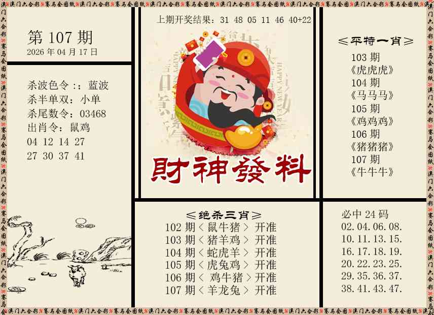 | 五行肖 | 五行生肖属性:【金肖】猴鸡 【木肖】虎兔 【水肖】鼠猪 【火肖】蛇马 【土肖】牛羊龙狗 | |||